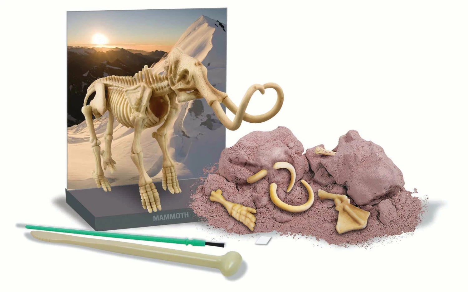 Pretend being a palaeontologist by excavating the bones of a dinosaur that roamed the Earth millions of years ago.Then put the pieces together to make the skeleton of a woolly Mammoth, found frozen deep in the Siberian ground.Contains skeleton about 21cm long when assembled. Contains small parts.