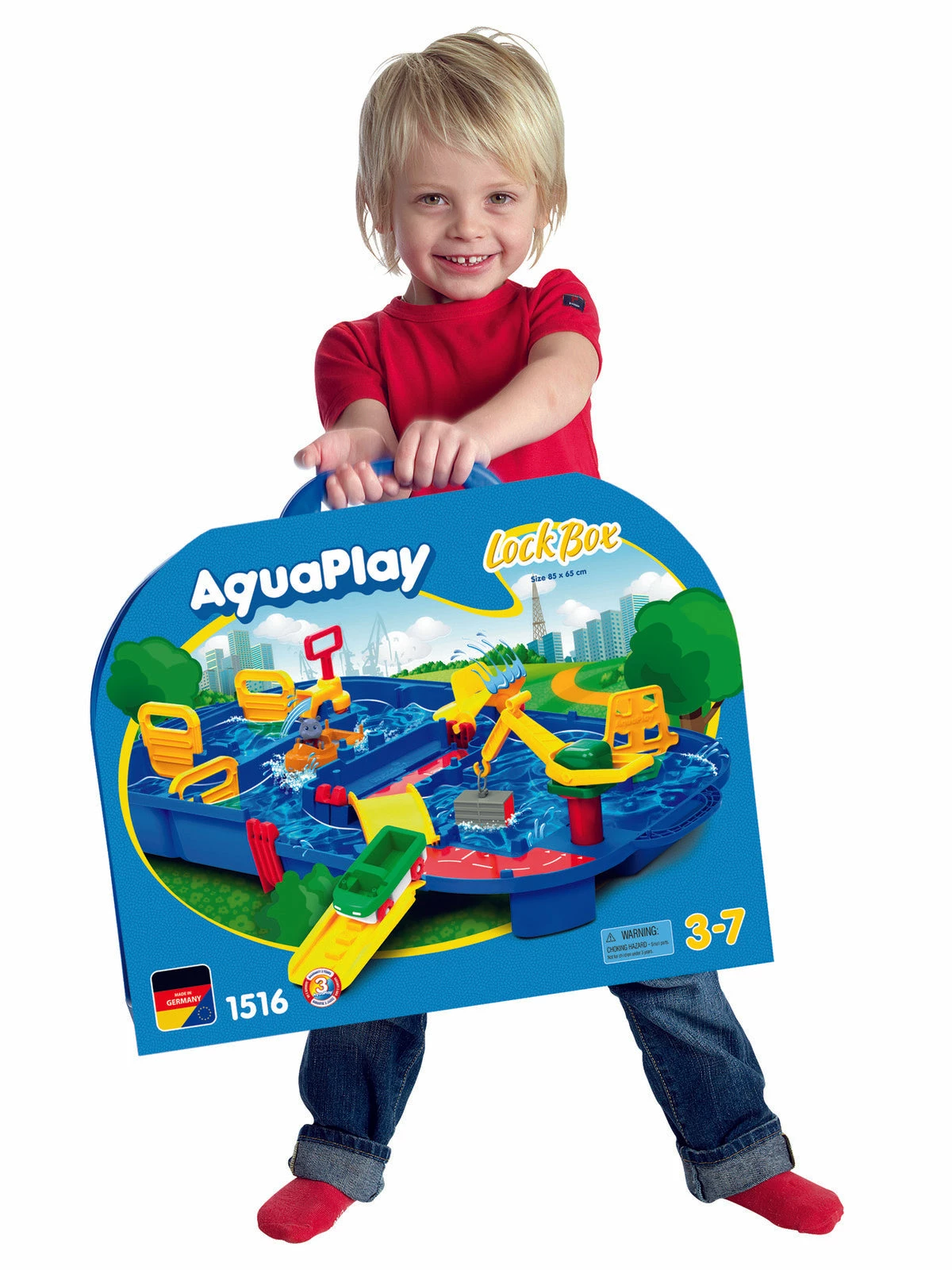 Let Wilma the Hippo take the container boat out for a journey through the popular lock system by using the pump. In the harbour the crane will assist you to load the container on the amphibian truck. By turning the paddle wheel the water flows through the canals, a playful way of educating how water moves.