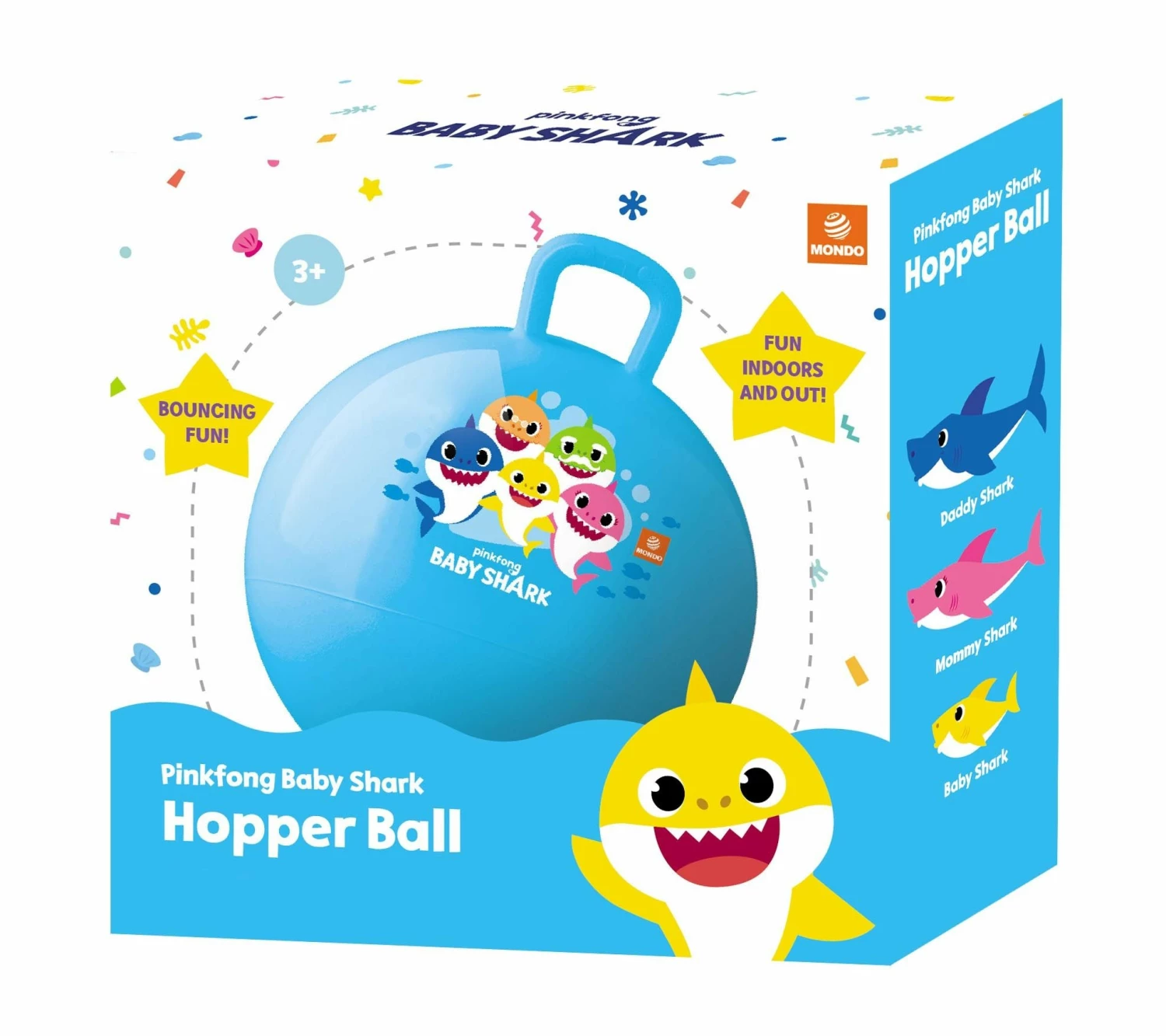 Bounce and hop all day long with the Baby Shark Hopper Ball. For indoor and outdoor use, this ball puts the fun in exercise and gets your children laughing and moving. Great for muscle development and coordination. 3+ years.