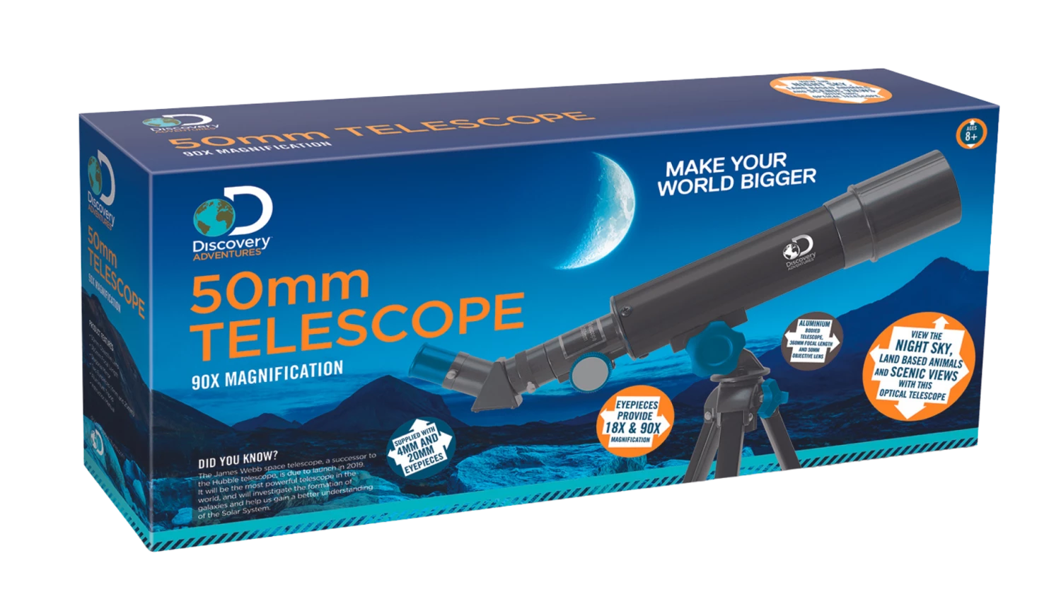 Made from aluminium, this 90mm long telescopes 50mm objective lens has a 360mm focal length provides the perfect viewing tool for young explorers.