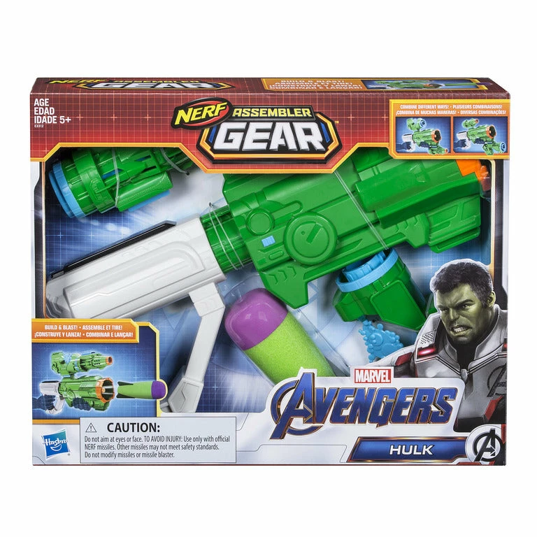 Collect, combine, and customize! With Marvel Avengers Untitled: Nerf Hulk Assembler Gear featuring Nerf technology, kids can assemble their ultimate blaster and imagine taking down villains with a Nerf Mega missile! Each Assembler Gear set features different blaster combinations and can be combined with other Assembler Gear sets (each set sold separately) to build customizable blasters and get ready to blast into action! With over 100 combinations of blasters with multiple sets (each set sold separately), the only question is: what will YOU assemble?