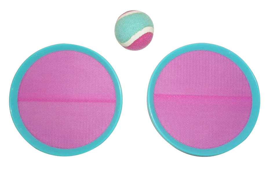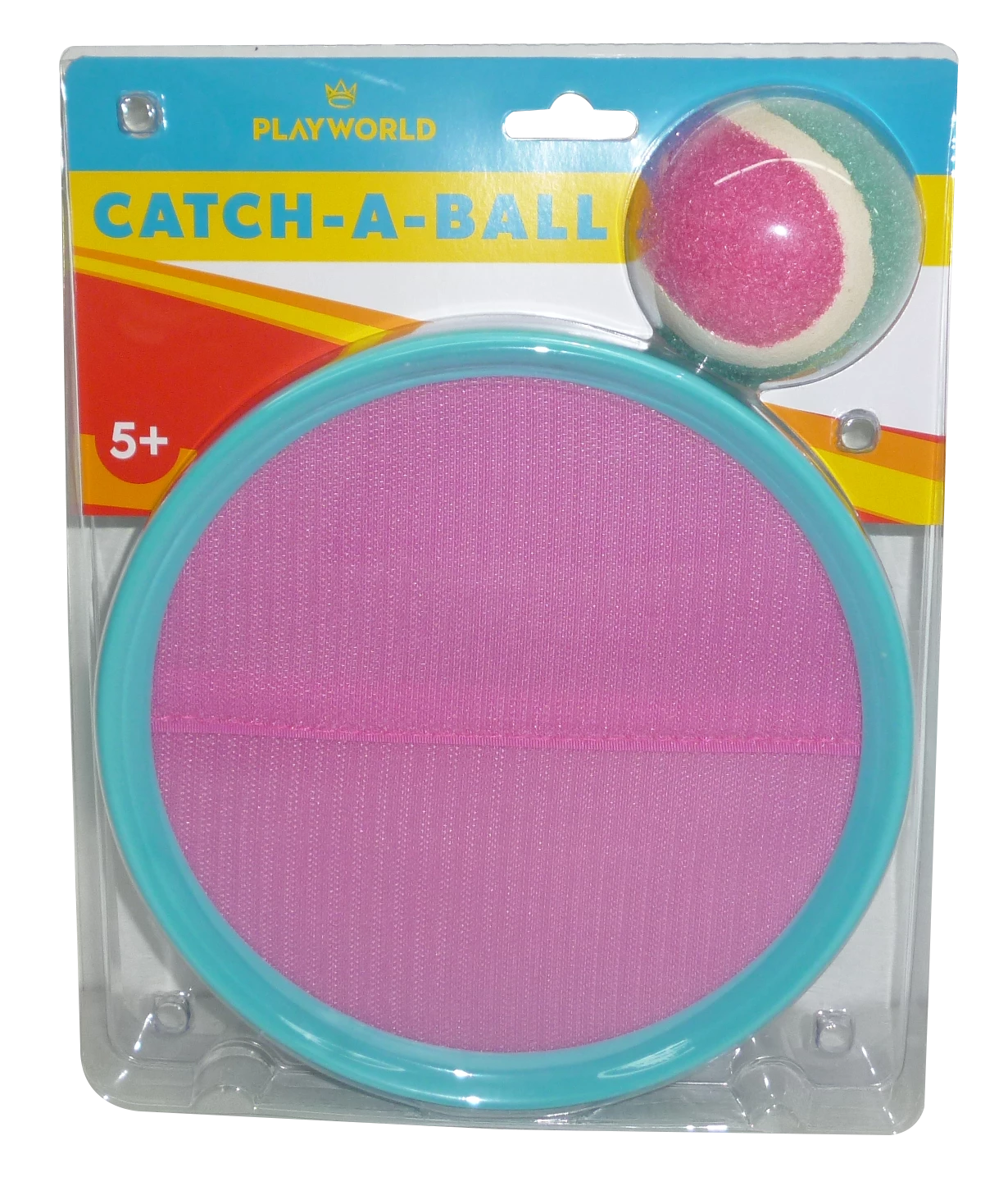 Includes ball and 2x velcro pads. This bright catch-a-ball set is suitable for ages 5+. Perfect to play outside with friends and family.