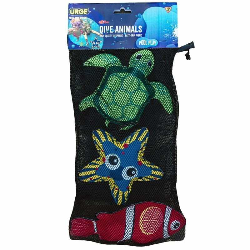 Brightly coloured neoprene, URGE Dive Animals are easy to see and easy to grab under water. A fun game to improve swimming skills and water confidence. The Dive Animals are weighted so sink to the bottom of the pool, ready to be caught!