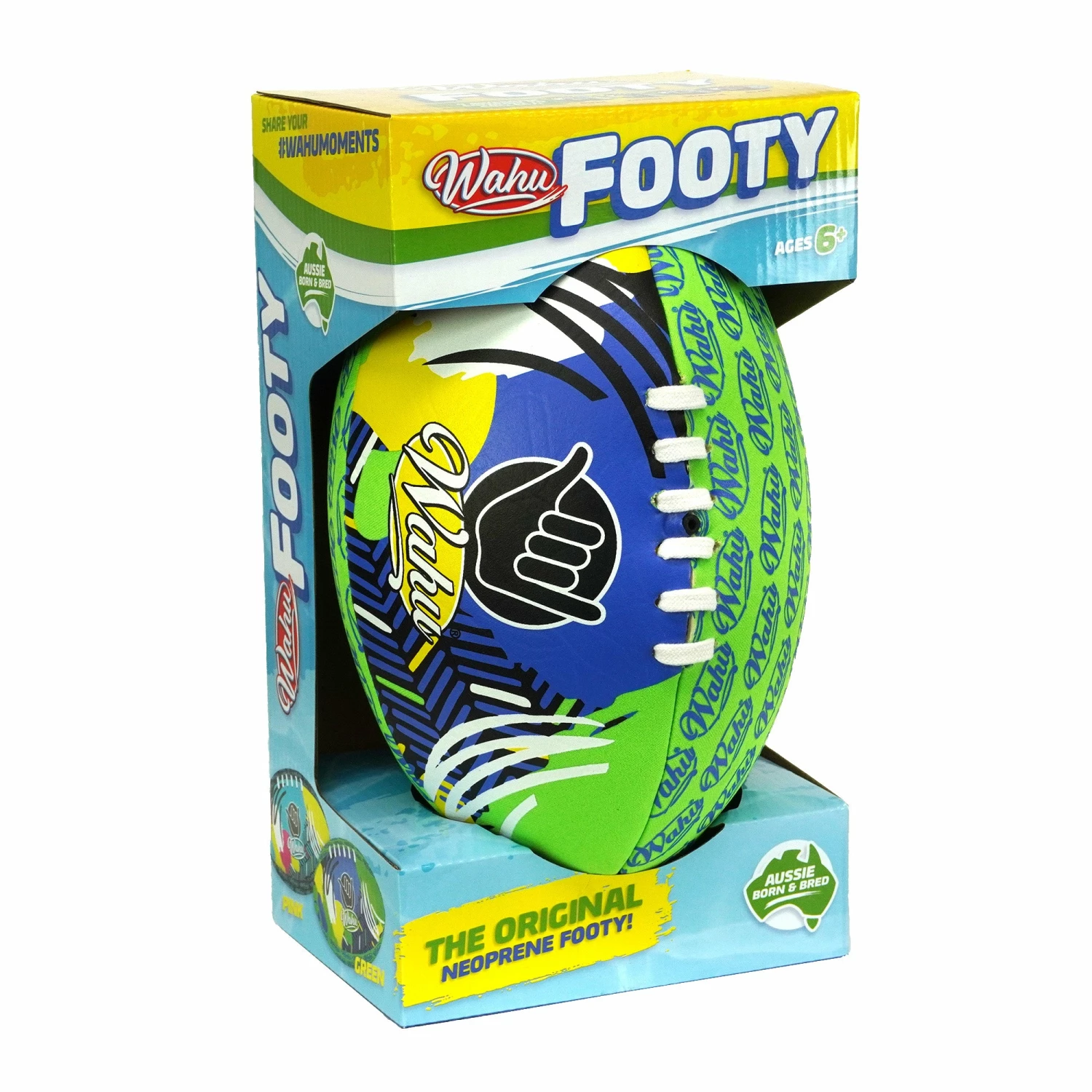 Wahu Beach Footy Whether you’re at the beach, park or in the back yard the Wahu Footy has a waterproof neoprene skin for all conditions. The real laces and raised graphics add to the authentic feel and offers maximum grip. The air-filled bladder means you can inflate to your liking. Recommended for 3 years and over. Packaging Dimensions: 295x165x160mm. Please note: As this item is an assortment we cannot guarantee a specific style, please let us choose on your behalf or state your preference in the comments section and we will do our best.