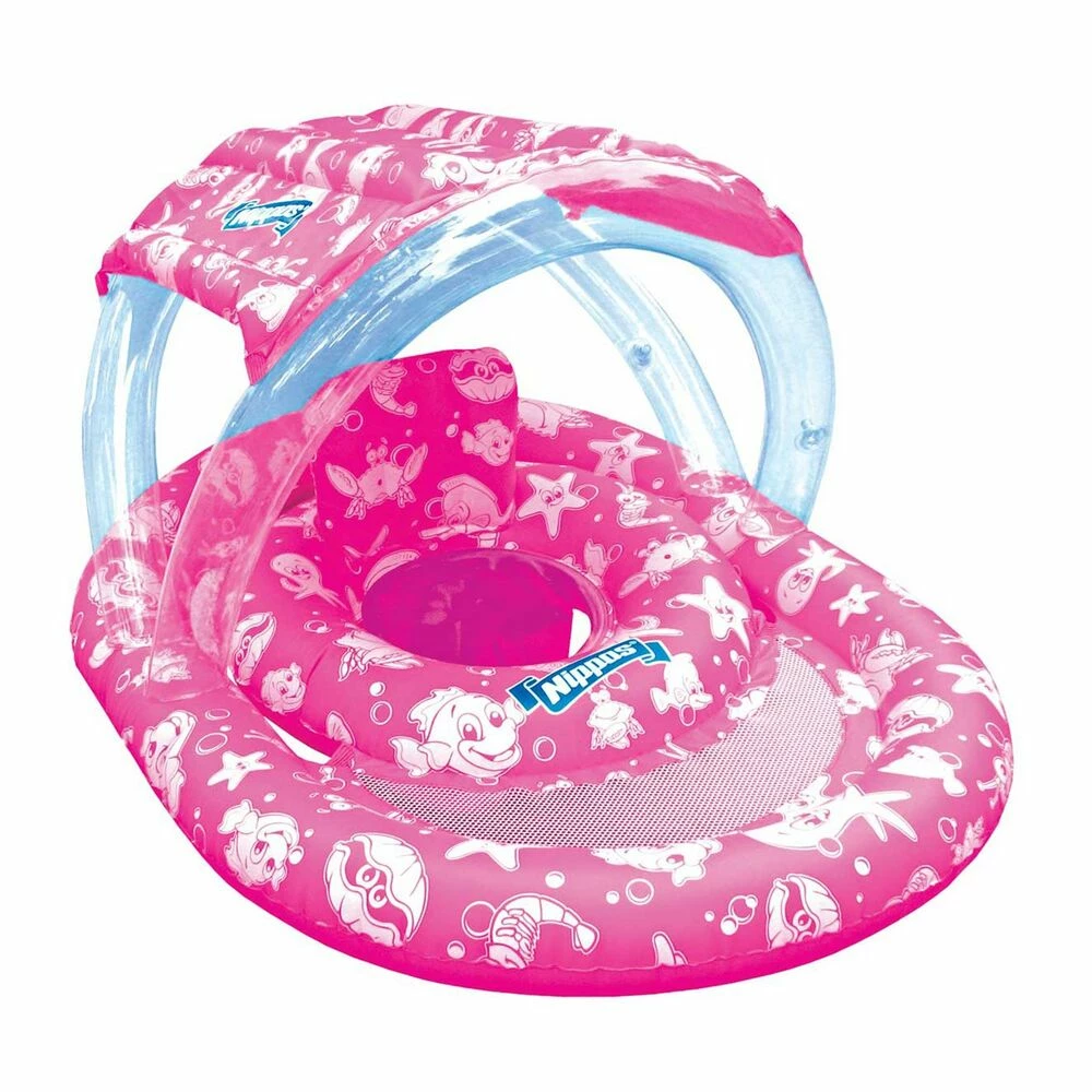 Fitted with a very comfy seat and back rest this Nippas swim ring is made from durable soft feel PVC and features a great mesh play area and a sun canopy so bubs can splash the day away in a cool floating paradise!